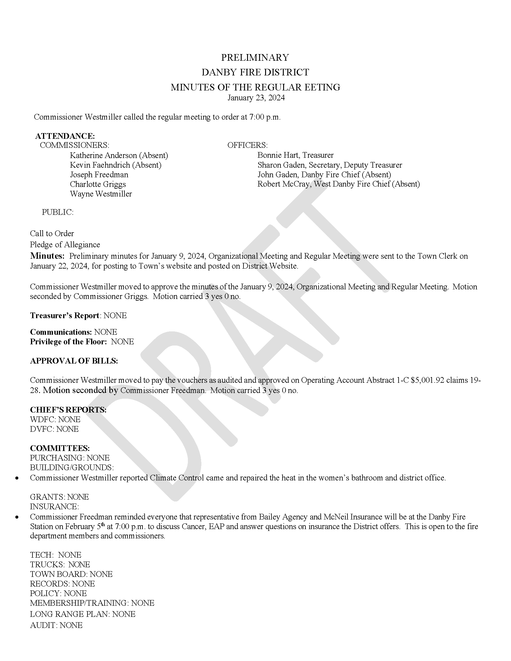 02/03/24 Special Meeting of Board of Fire Commissioners