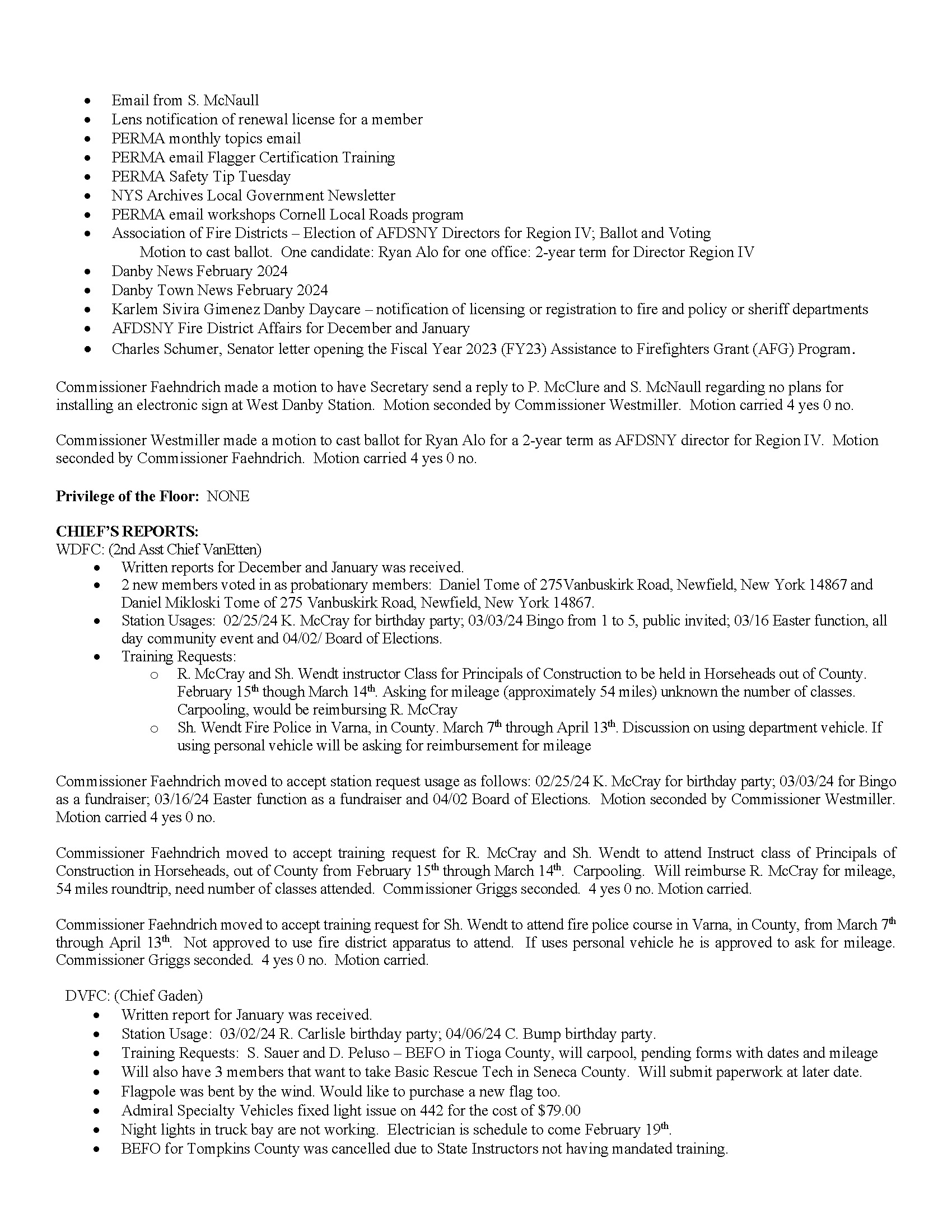 02/03/24 Special Meeting of Board of Fire Commissioners