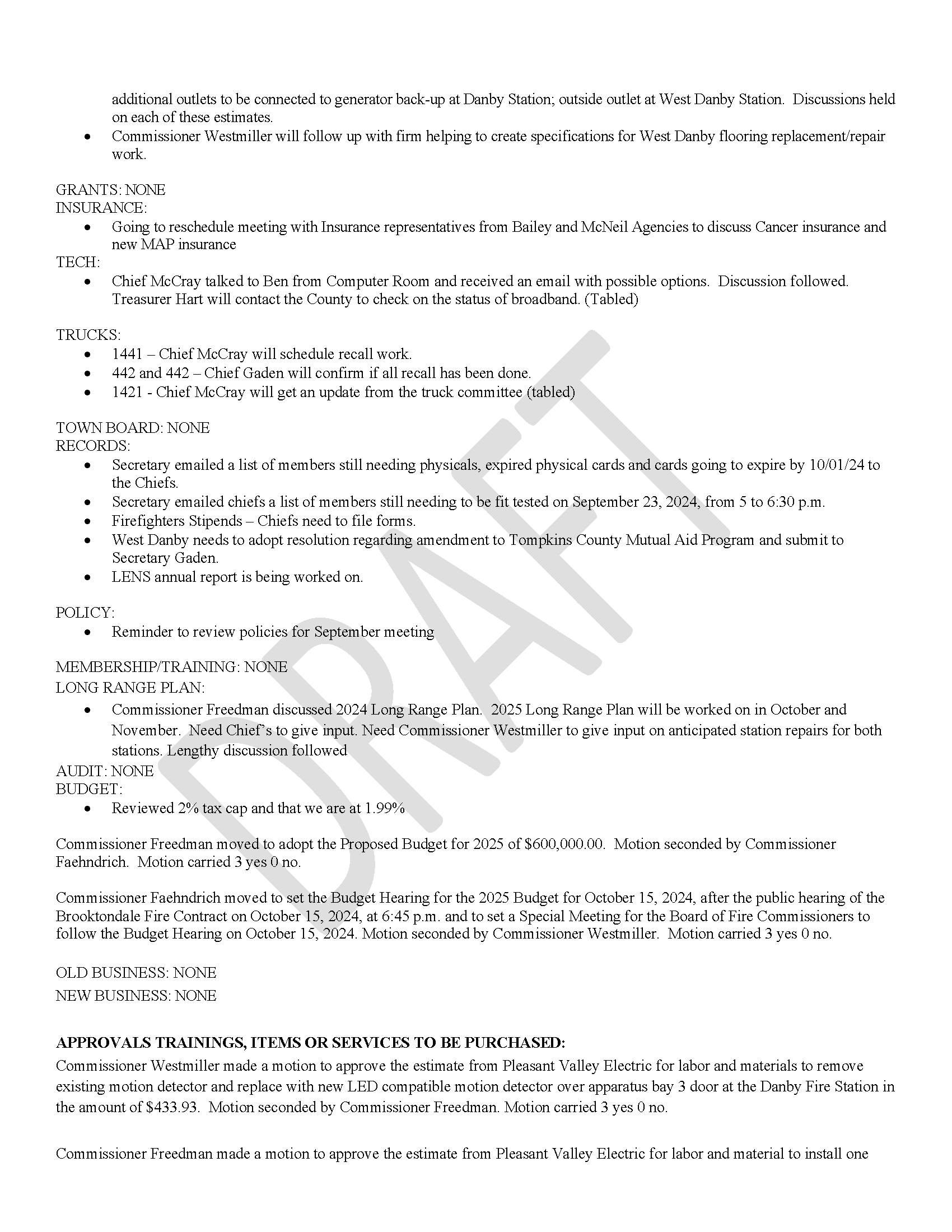 10/08/24 Board of Fire Commissioner’s Meeting Minutes
