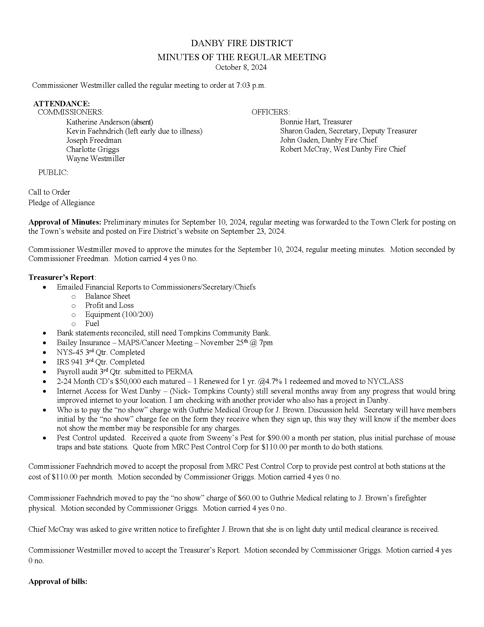 10/08/24 Board of Fire Commissioner’s Meeting Minutes Oct 21 Written By Secretary Account Secretary Account