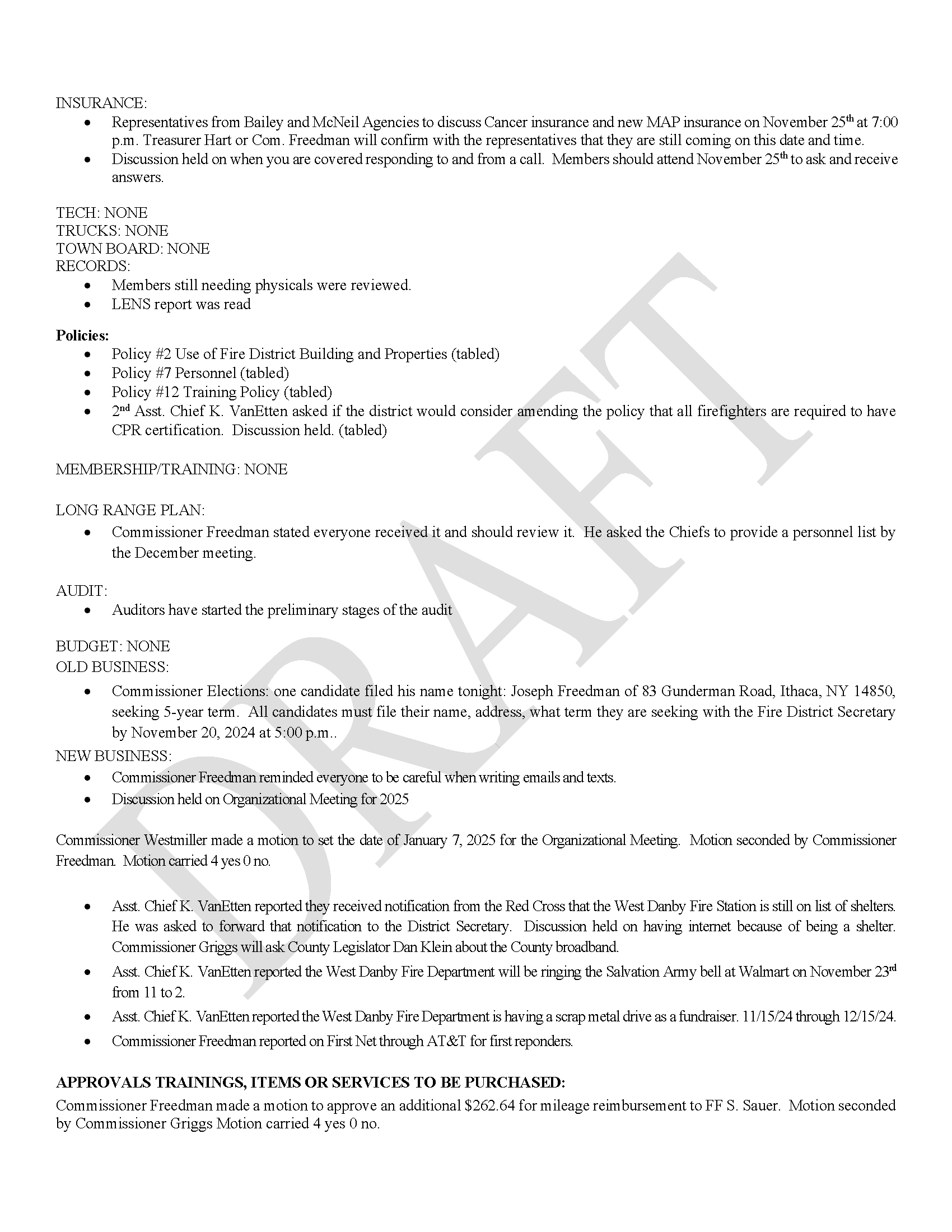 11/12/24 Board of Fire Commissioner's Meeting Minutes Nov 23 Written By Secretary Account Secretary Account