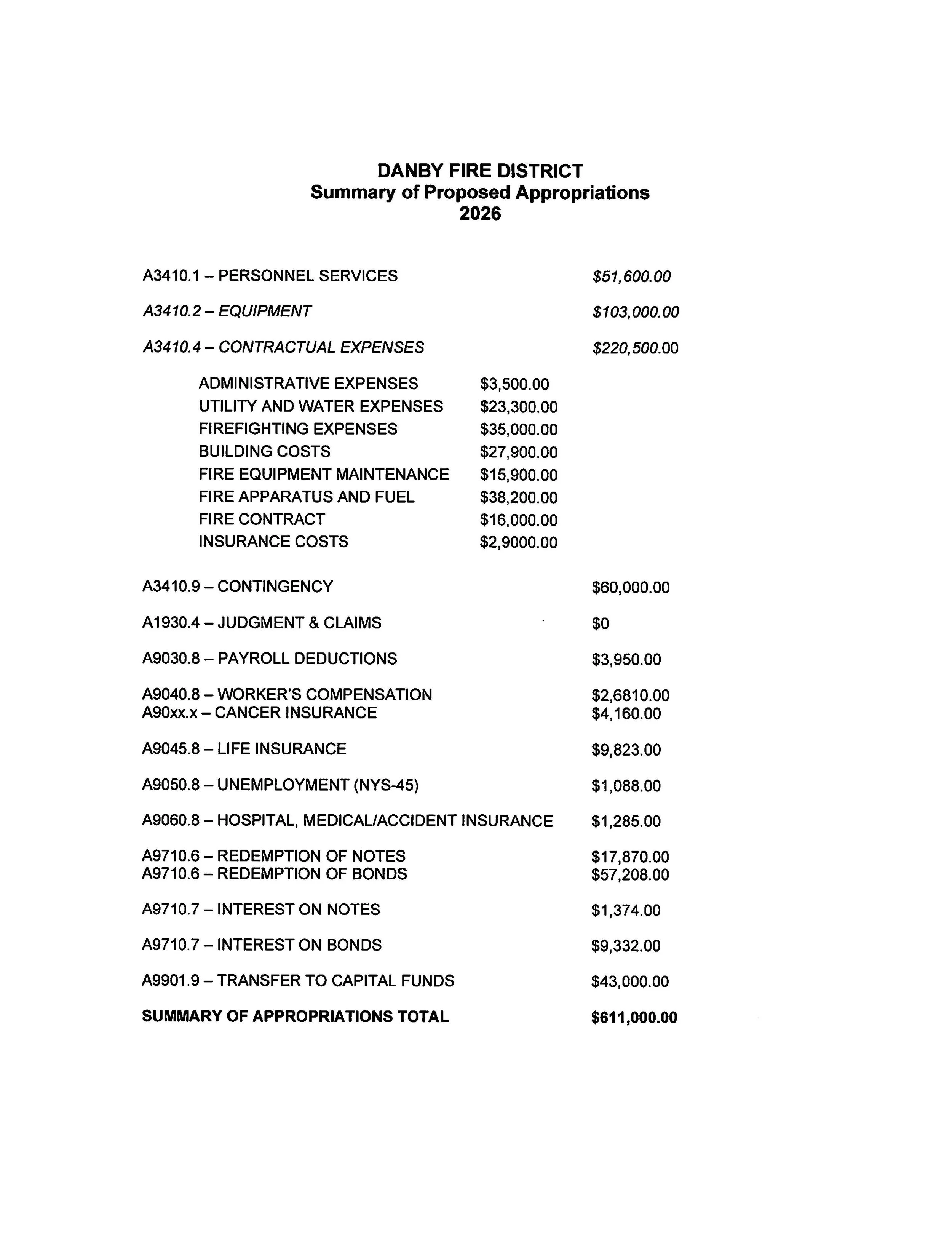 Adopted 2026 Proposed Budget Summary
